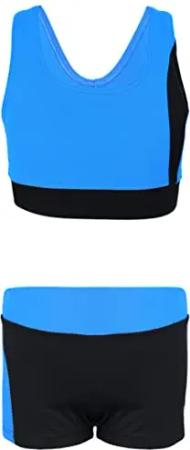 Mädchen Badeanzug – Sport Badeanzug Mädchen Zweiteilig mit Racerback und Badehose, Farbe: Schwarz/Blau, Größe: 140