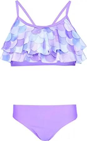 Mädchen Bikini Set Bustier Bikinislip Zweiteiliger Badeanzug, Farbe: 030F mit Rüschen/Meerjungfrau Violett/Lila, Größe: 146