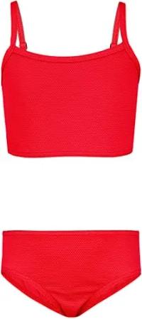 Mädchen Sport Bikini Racerback Bustier & Bikinislip, Farbe: Jacquard Punkte Rot, Größe: 158