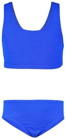 Mädchen Sport Bikini Racerback Bustier & Bikinislip, Farbe: Wellen Blau Dunkelblau, Größe: 122