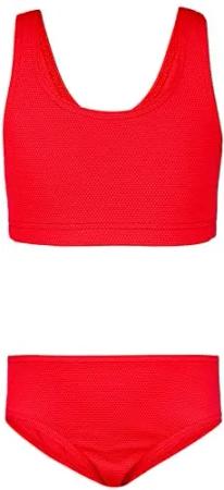 Mädchen Sport Bikini Racerback Bustier & Bikinislip, Farbe: Jacquard Punkte Rot, Größe: 128