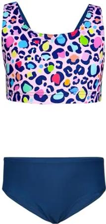 Mädchen Sport Bikini Racerback Bustier & Bikinislip, Farbe: Leopardenmuster Rosa Pink Lila Dunkelblau, Größe: 170