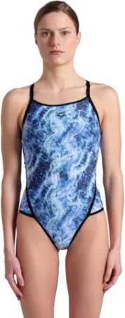 Damen-Badeanzug Standard Performance Pacific Super Fly Back, Schwarz/Blau, mehrfarbig, 36