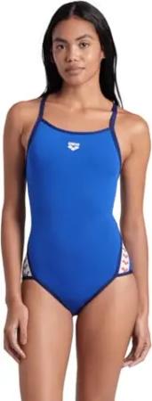 Damen Performance Monogramm Challenge Back Athletic One Piece Damen-Badeanzug, Blue River Multi/Shocking Pink, 38