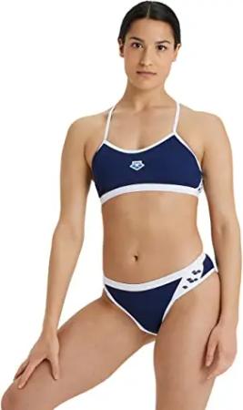 Damen Women's Icons Bikini Cross Back Solid Zweiteilig, Navy-Weiß, 38, 005037-701