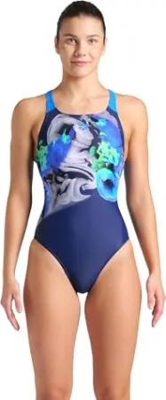 Damen Marbled Badeanzug, Navy/Navy Multi, 30 EU