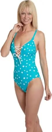 Badeanzug Unifarben Tupfenmuster Punkte Einteiler mit Softschalen Schnürung breite verstellbare Träger tiefer Rücken