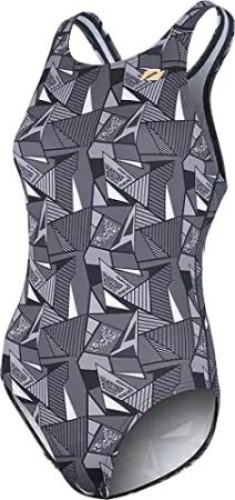 Damen Hyperboom Allover Medalist Badeanzug, Schwarz/Grau, 34
