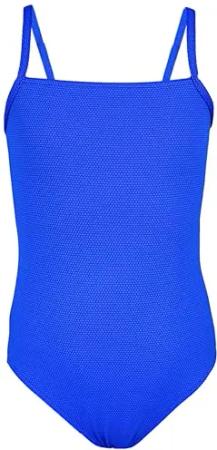 Mädchen Badeanzug mit Spaghettiträgern Streifen – Sport Badeanzug Mädchen, Chlorresistent, Farbe: Jacquard Punkte Kornblumenblau, Größe: 128