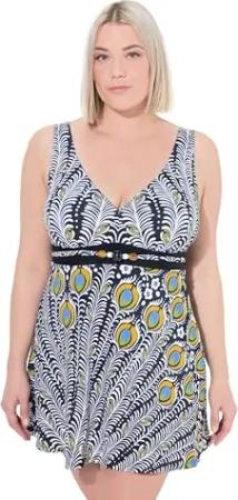 Damen große Größen Übergrößen Plus Size Badekleid, Pfau, Softcups, Powermesh-Futter, recycelt schwarz 56 836236100-56