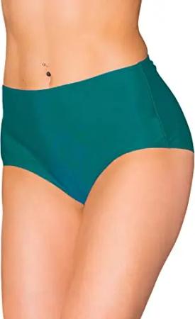 Bikinihose Damen mit Hohem Bund – Klassische Bikinihosen für Damen in Großen Größen, Farbe: Petrolgrün, Größe: 40