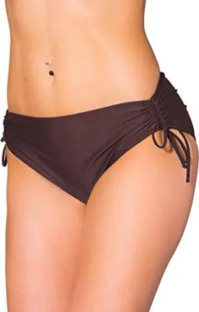 Bikinihose Damen mit Raffung – Bikinihosen für Damen mit Bindebändern, schnelltrocknend, Farbe: Braun, Größe: 40