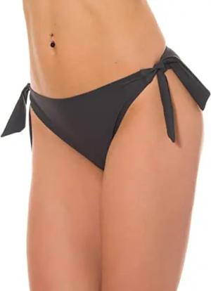 Bikinihose Damen mit seitlicher Schnürung – Hüftslip Bikinihosen für Damen in Unifarben, Farbe: Graphit, Größe: 38