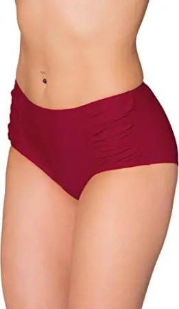 Damen Bikinihose mit seitlichen Raffungen, Farbe: Dunkelrot, Größe: 40