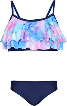 Mädchen Bikini Set Bustier Bikinislip Zweiteiliger Badeanzug, Farbe: 030D mit Rüschen/Tie Dye/Blau/Lila/Rosa, Größe: 158