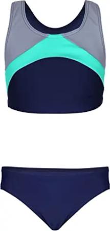 Mädchen Sport Bikini Racerback Bustier & Bikinislip, Farbe: Dunkelblau/Grau/Grün, Größe: 152