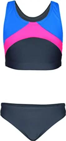 Mädchen Sport Bikini Racerback Bustier & Bikinislip, Farbe: Graphit/Blau/Rosa, Größe: 146