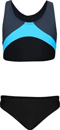 Mädchen Sport Bikini Racerback Bustier & Bikinislip, Farbe: Schwarz/Graphit/Blau, Größe: 152