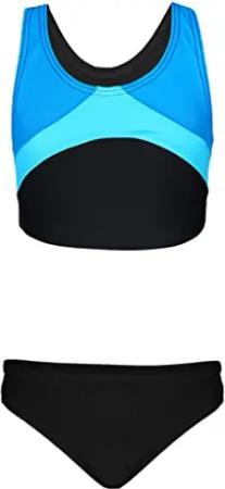 Mädchen Sport Bikini Racerback Bustier & Bikinislip, Farbe: Schwarz/Türkis/Himmelblau, Größe: 134