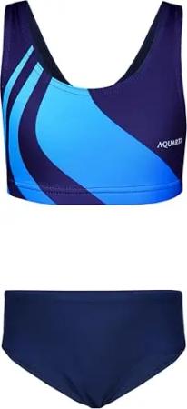Mädchen Sport Bikini Racerback Bustier & Bikinislip, Farbe: Wellen Blau Dunkelblau, Größe: 122