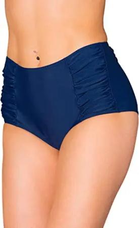 Bikinihose Damen mit Hoher Taille und Raffung – Klassische Bikinihosen für Damen in Uni-Farben, Farbe: Dunkelblau, Größe: 40