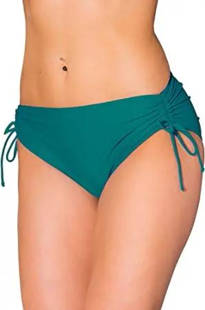 Bikinihose Damen mit Raffung – Bikinihosen für Damen mit Bindebändern, schnelltrocknend, Farbe: Petrolgrün, Größe: 40