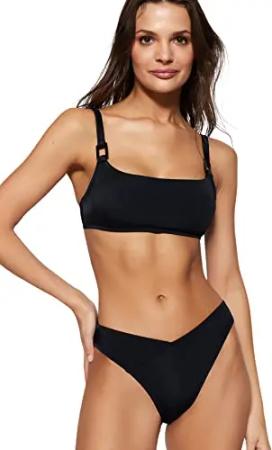 Damen Bralette Knit Bikini Top, Schwarz, 40
