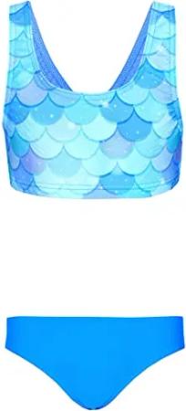 Mädchen Sport Bikini Racerback Bustier & Bikinislip, Farbe: Meerjungfrau Blau/Türkis, Größe: 116