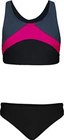 Mädchen Sport Bikini Racerback Bustier & Bikinislip, Farbe: Schwarz/Graphit/Amarant, Größe: 170