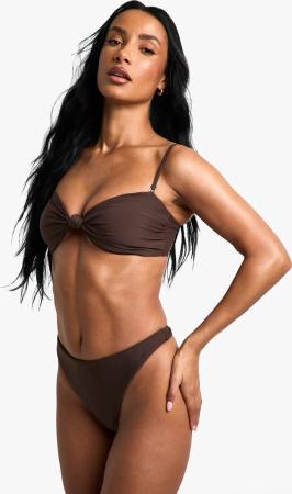 Asymmetrischer Bandeau-Bikini Mit Perlen-Detail - Chocolate - 32, Chocolate