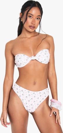 Florales Bandeau-Bikinioberteil Mit Knoten - Pink - 34, Pink
