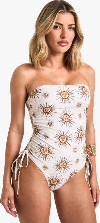 Geraffter Bandeau-Badeanzug Mit Print - Beige - 34, Beige