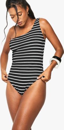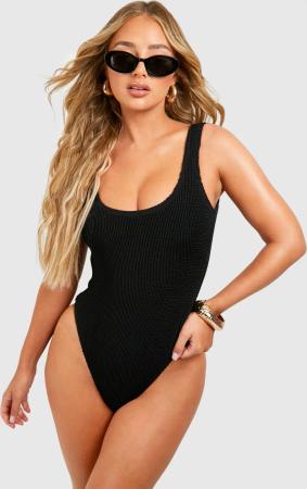 Premium Badeanzug In Knitteroptik Mit Geradem Ausschnitt - Black - 34, Black