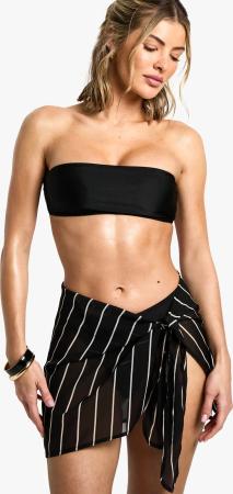 Gestreifter Mini-Sarong Mit Essentials Strand-Print - Black - M, Black