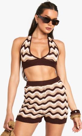 Gestreiftes Gehäkeltes Bralette - Chocolate - M, Chocolate