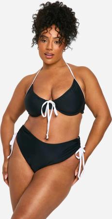 Plus Bikinihose Mit Kontrast Und Seitlicher Raffung - Black - 52, Black