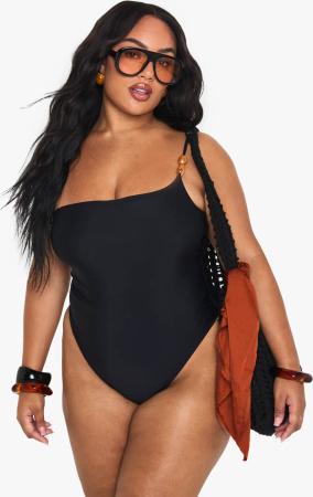 Plus Einärmliger Badeanzug Mit Resin-Stein - Black - 42, Black