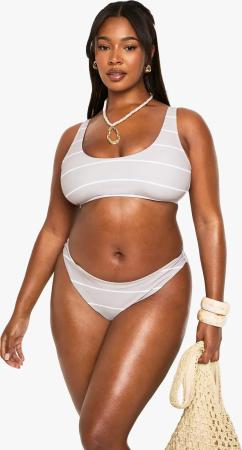 Plus Gestreiftes Worldwide Essentials Rundhals-Bikinioberteil - Stone - 48, Stone