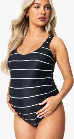 Umstandsmode Gestreifter Rundhals-Badeanzug - Black_White - 36, Black_White