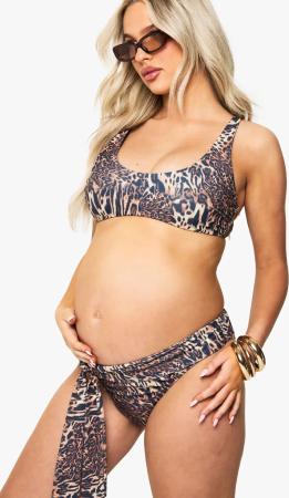 Umstandsmode Leopardenprint Rundhals-Bikini Mit Hohem Bund - Brown - 36, Brown
