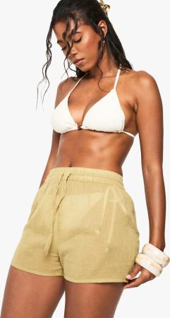 Womens Cheesecloth Beach Shorts - Khaki - S, Khaki