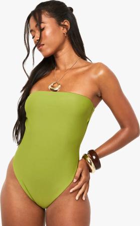 Womens Swimwear Essentials Bandeau Swimsuit - Olive - 38, Olive