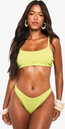 Womens Swimwear Essentials Crinkle Scoop Neck Bikini Top - Olive - 34, Olive
