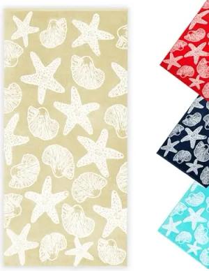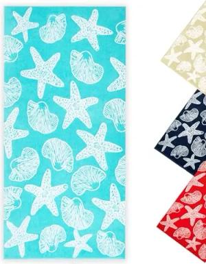 Strandtuch - Flauschiges und saugstarkes Badetuch in 90x180 cm - waschbar bis 60°C - Baumwolle - maritimes Muster mit Seesternen und Muscheln in beige - Oeko Tex® Zertifiziert