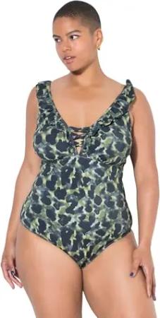 Damen große Größen Übergrößen Plus Size Badeanzug, Softcups, Camouflage, Volants, Shaping Pistazie 48 841560407-48