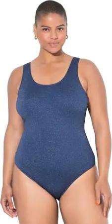 Damen große Größen Übergrößen Plus Size Badeanzug, Softcups, Glittereffekt, Shaping dunkel blau 52 842361741-52
