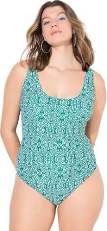 Damen große Größen Übergrößen Plus Size Badeanzug, Softcups, grafischer Print, Shaping grün 48 838794466-48