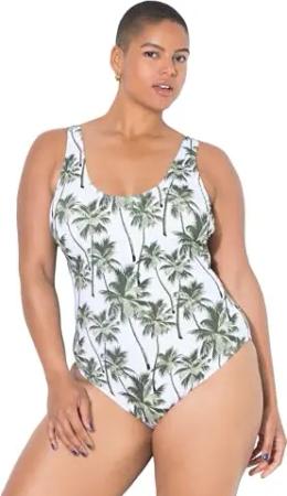 Damen große Größen Übergrößen Plus Size Badeanzug, Softcups, Palmen-Print, Shaping Offwhite 46 841552200-46