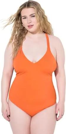 Damen große Größen Übergrößen Plus Size Badeanzug, Softcups, Rücken-Bänder, Shaping kürbis 48 841241663-48