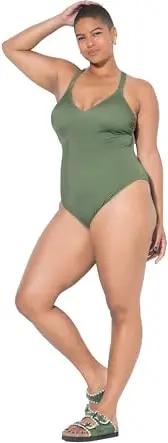 Damen große Größen Übergrößen Plus Size Badeanzug, Softcups, Rücken-Bänder, Shaping olivgrün 48 841241439-48